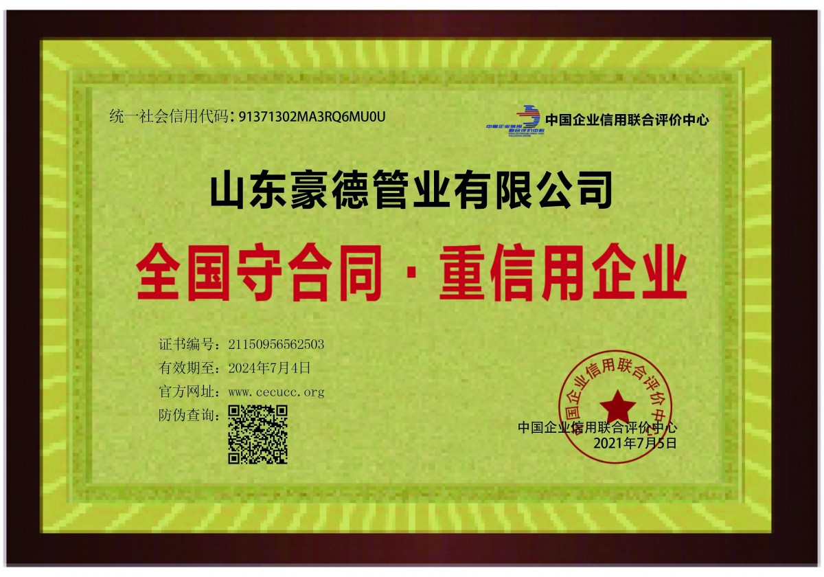 山東豪德管業有限公司豪德——專業pe管材生產廠家公司是聚乙烯PE管材管件生產建設基地,年產各類PE管材近億噸,綜合性能好。
