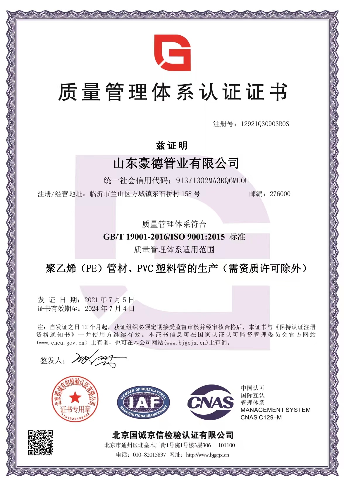 山東豪德管業有限公司豪德——專業pe管材生產廠家公司是聚乙烯PE管材管件生產建設基地,年產各類PE管材近億噸,綜合性能好。